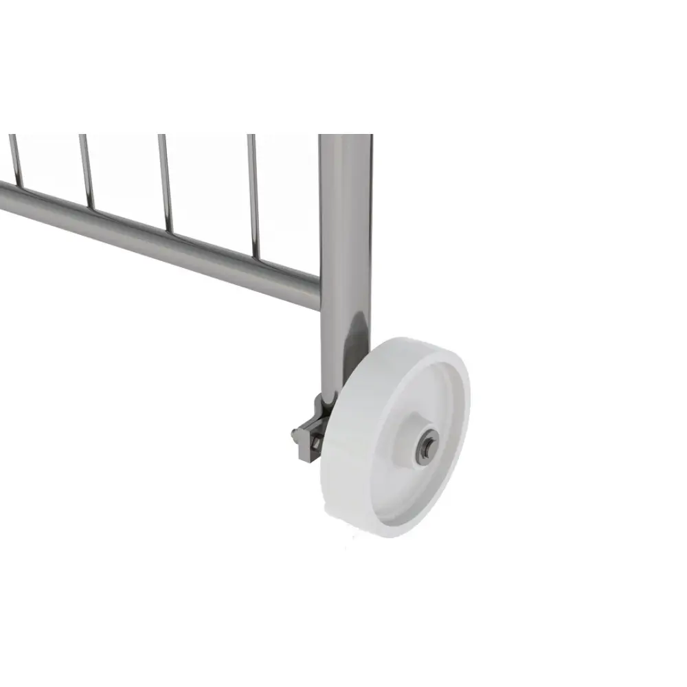 A kapukerék segítségével egy mobilkerítés táblából egyszerűen nyíló kapu alakítható ki. A kerék a hozzá tartozó bilincs segítségével rögzíthető a mobil kerítés elem alsó részéhez. A kerék ipari műanyagból készült, míg a bilincs horganyzott acélból, így kiválóan ellenáll a környezeti hatásoknak és az időjárás viszontagságainak.